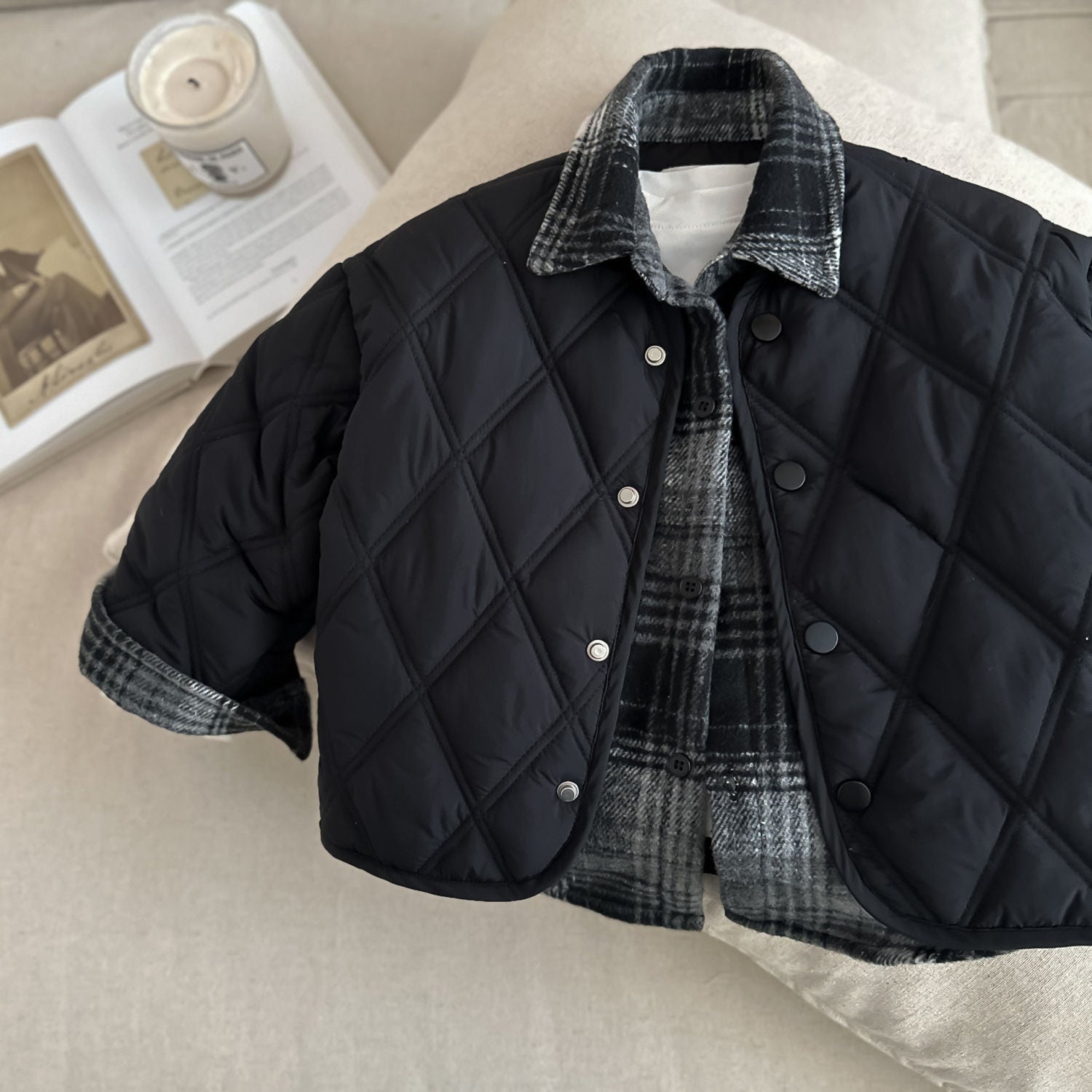 [수입] 체크레이어드누빔점퍼 (바로배송)